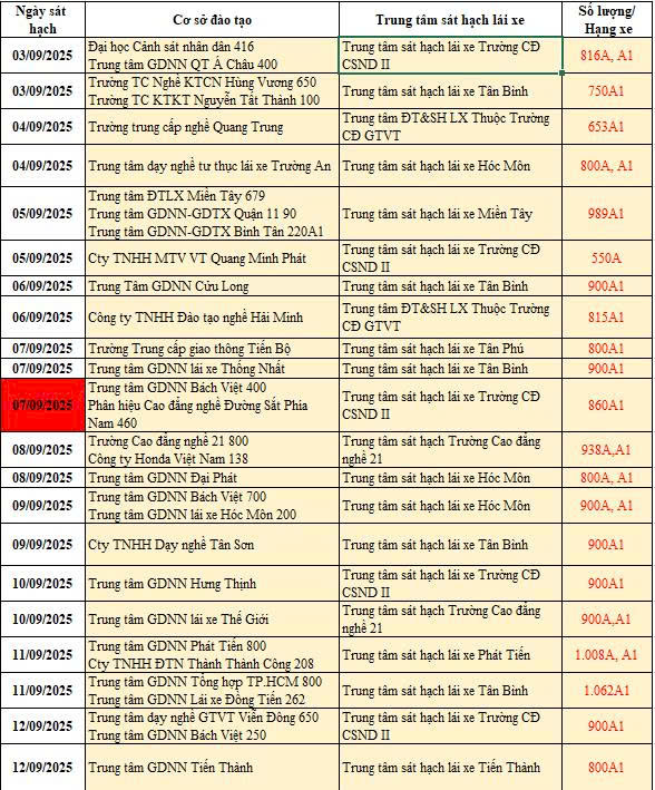 Phòng CSGT TP.Hồ Chí Minh công bố lịch tổ chức sát hạch lái xe Môtô tháng 9 năm 2025